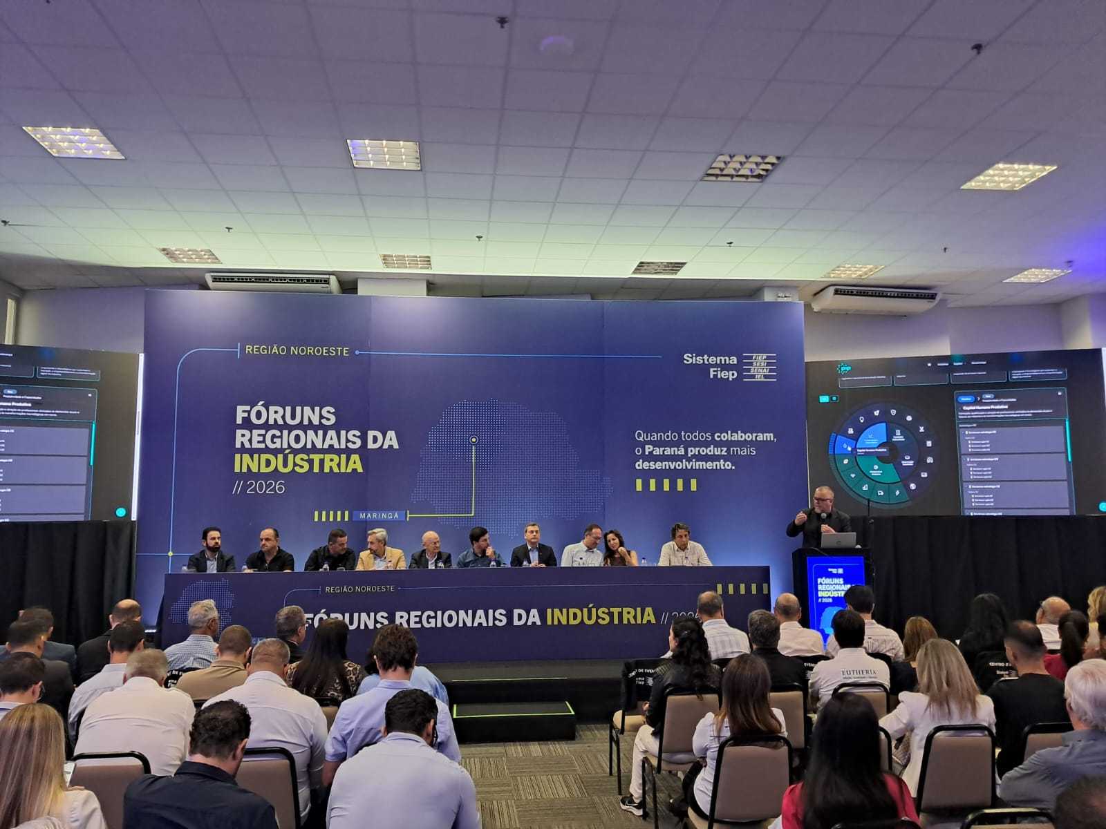 A Câmara de Vereadores de Maringá participou, nesta sexta-feira (10), da abertura do Fórum Regional Noroeste da Indústria, realizado pela Federação das Indústrias do Paraná (Fiep). O evento reúne empresários, lideranças industriais, autoridades e representantes de entidades do Noroeste do estado. Participaram do encontro os vereadores Giselli Bianchini, Uilian da Farmácia e William Gentil.
