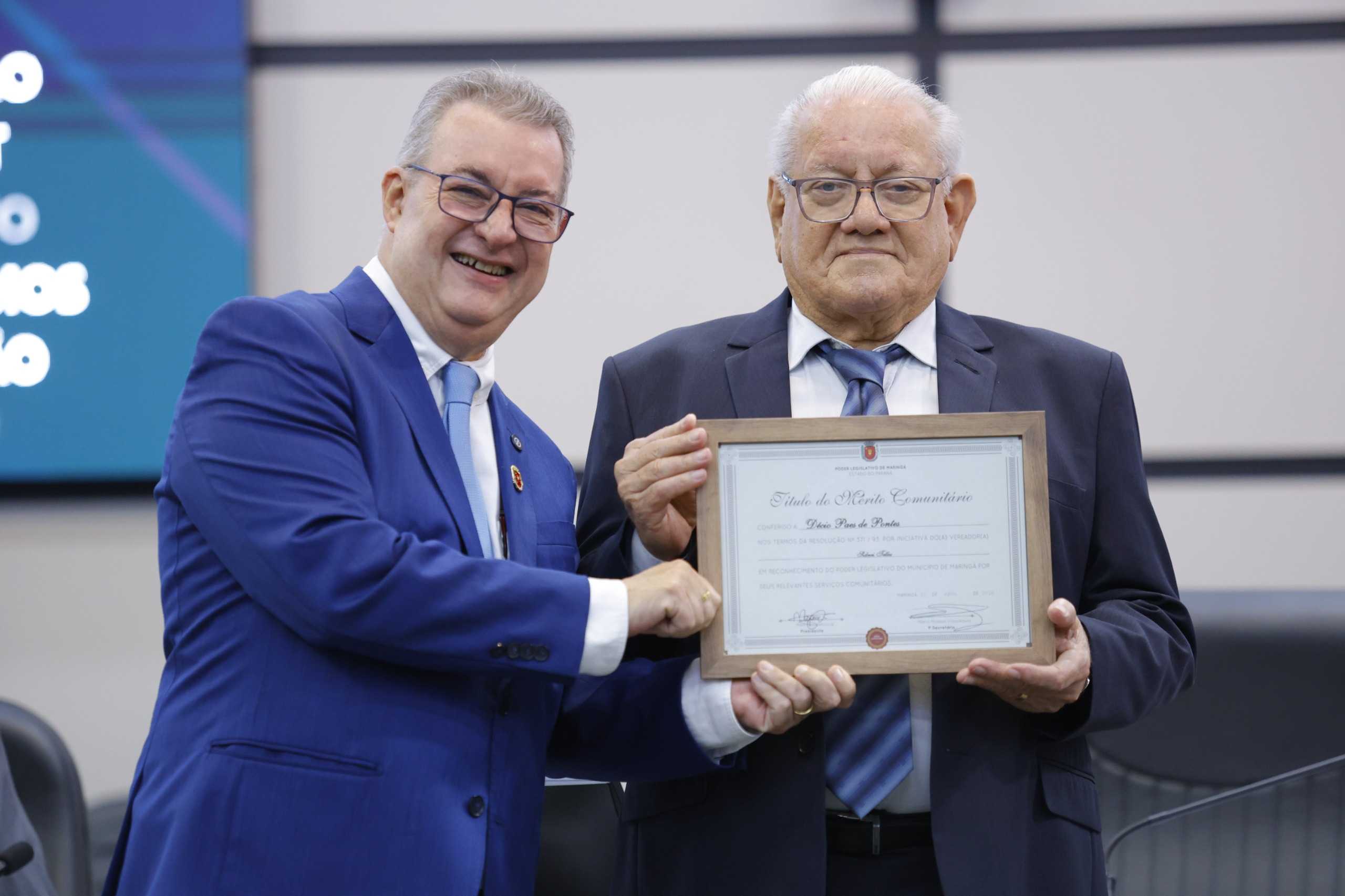 A Câmara de Vereadores de Maringá homenageou, na sessão ordinária desta quinta-feira (30), o servidor público municipal Décio Paes de Pontes com o título de Mérito Comunitário e o Brasão do Município.